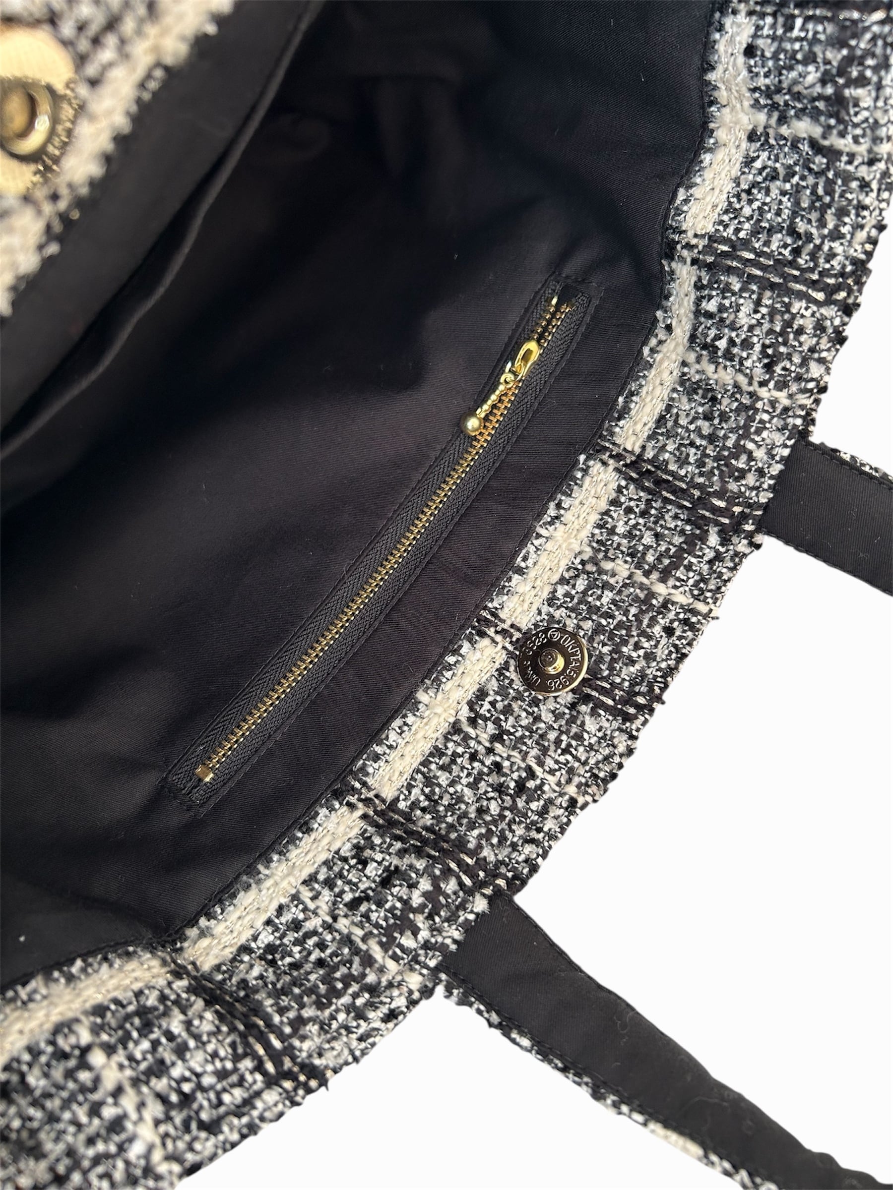 こちらの商品は黒×白のチェック生地で少しキラキラした糸も使用してあり、日常使いやちょっとしたお出かけにぴったりのアイテムです♪♪