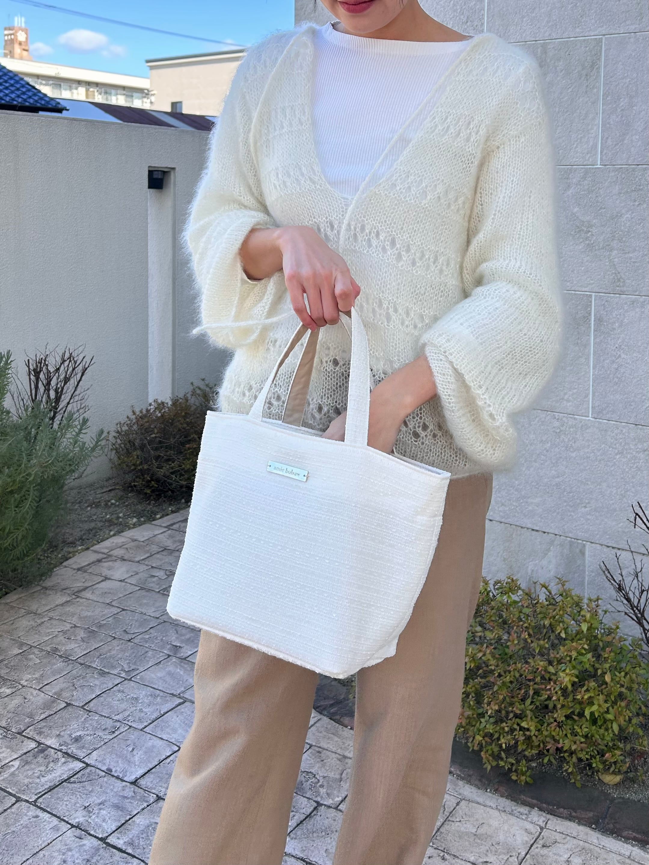 こちらの商品はオフホワイトの通年使用していただける生地で作られており、日常使いやちょっとしたお出かけにぴったりのアイテムです♪♪