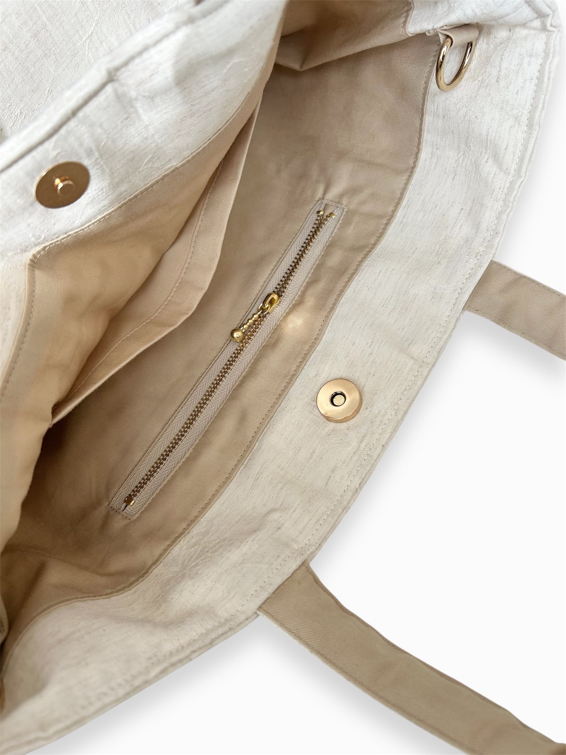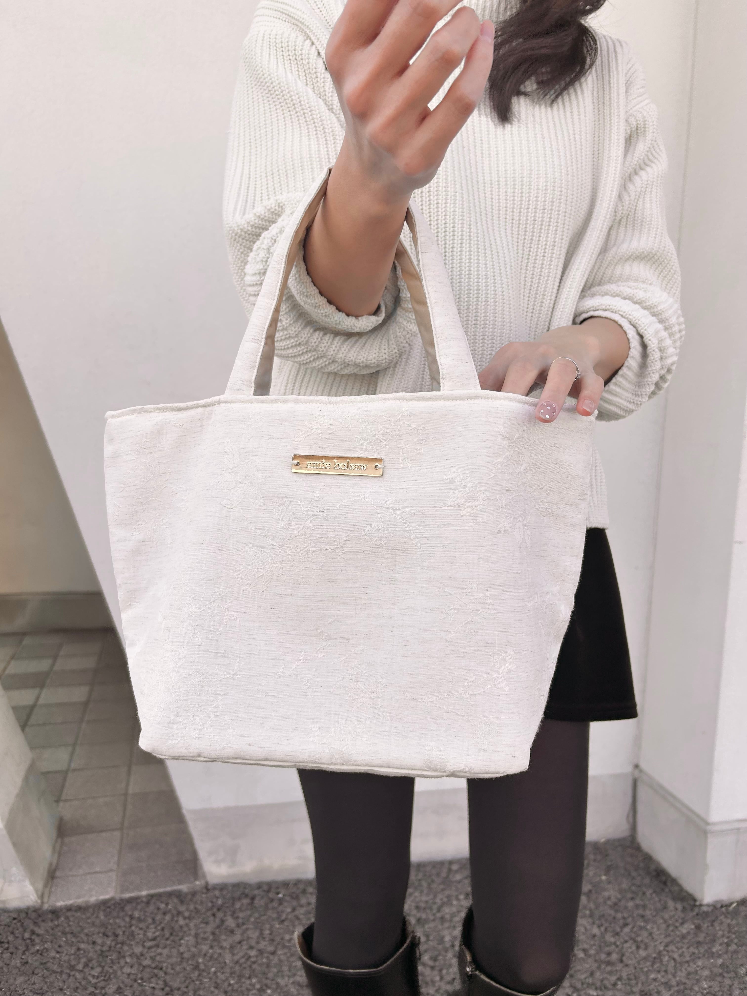 こちらの商品はベージュの生地に同色の糸で草花の刺繍が入った生地で作られており、日常使いやちょっとしたお出かけにぴったりのアイテムです♪♪