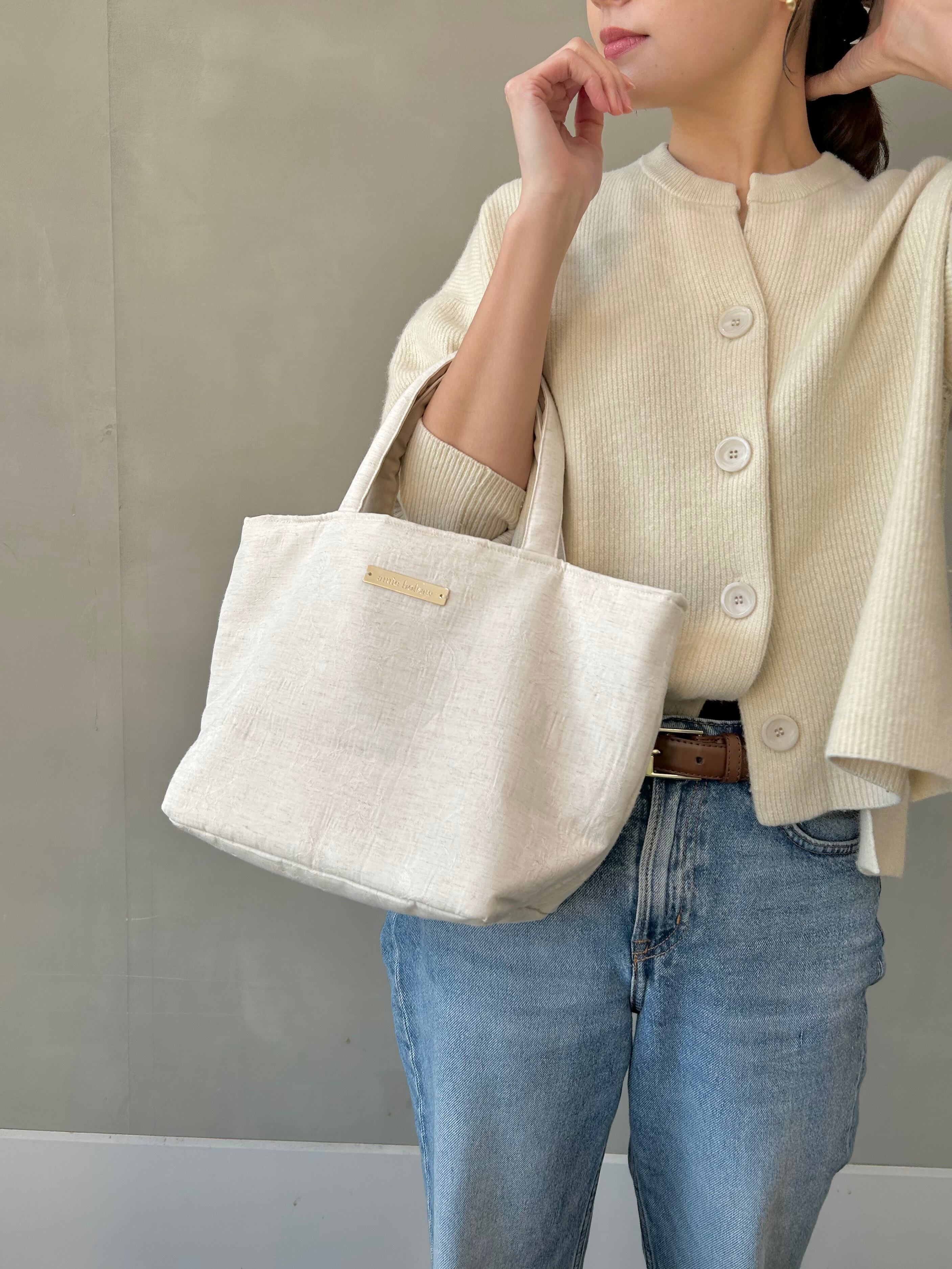 このトートバッグは、中にキルティング綿をいれており柔らかさがありながらも、トートバッグの形をキレイに保つよう考えて作られています。日々の使用においてもストレスを感じさせず、持ち運びも楽々です。