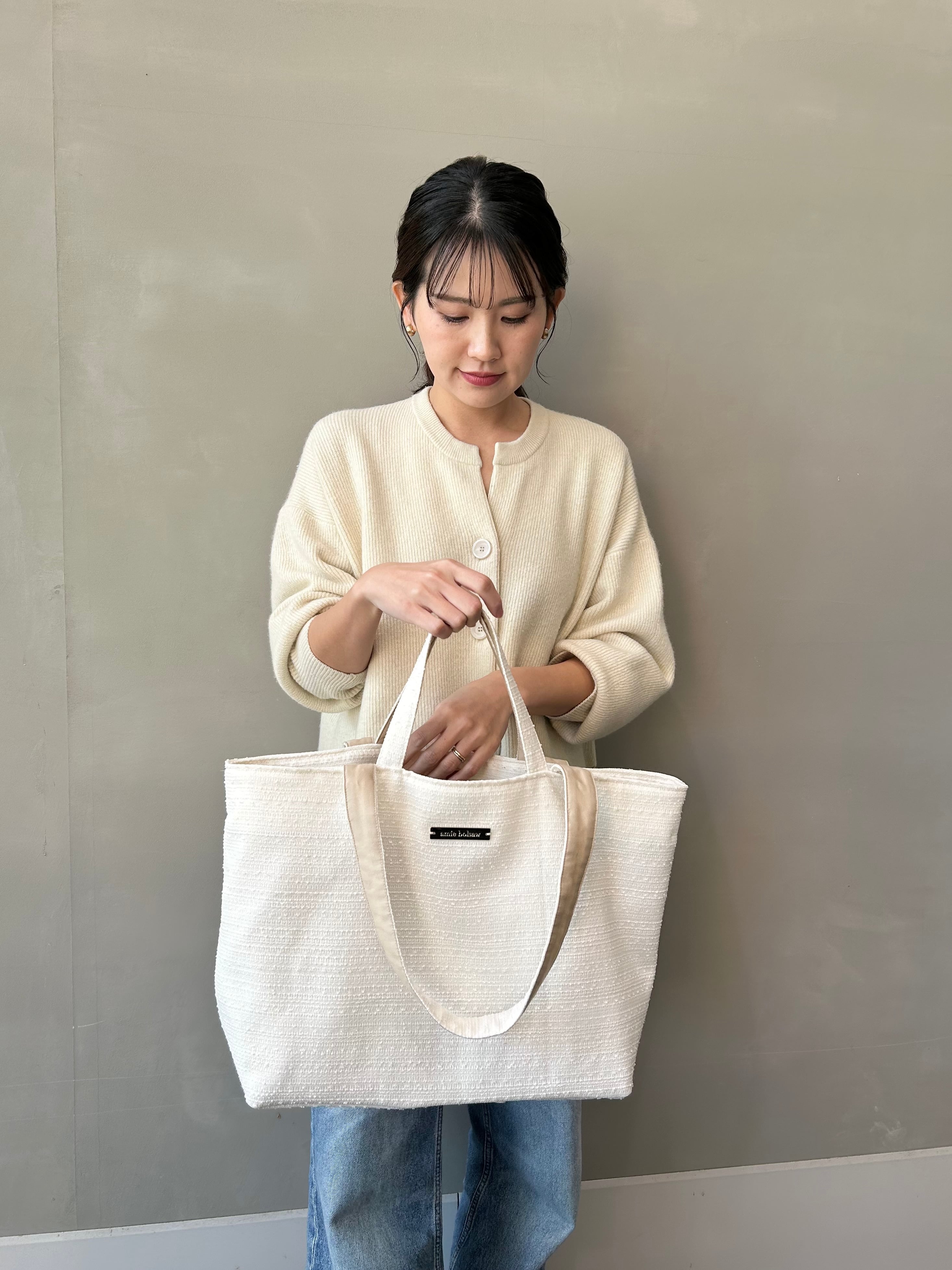 こちらの商品はオフホワイトの通年使用していただける生地で作られており、日常使いやちょっとしたお出かけにぴったりのアイテムです♪♪